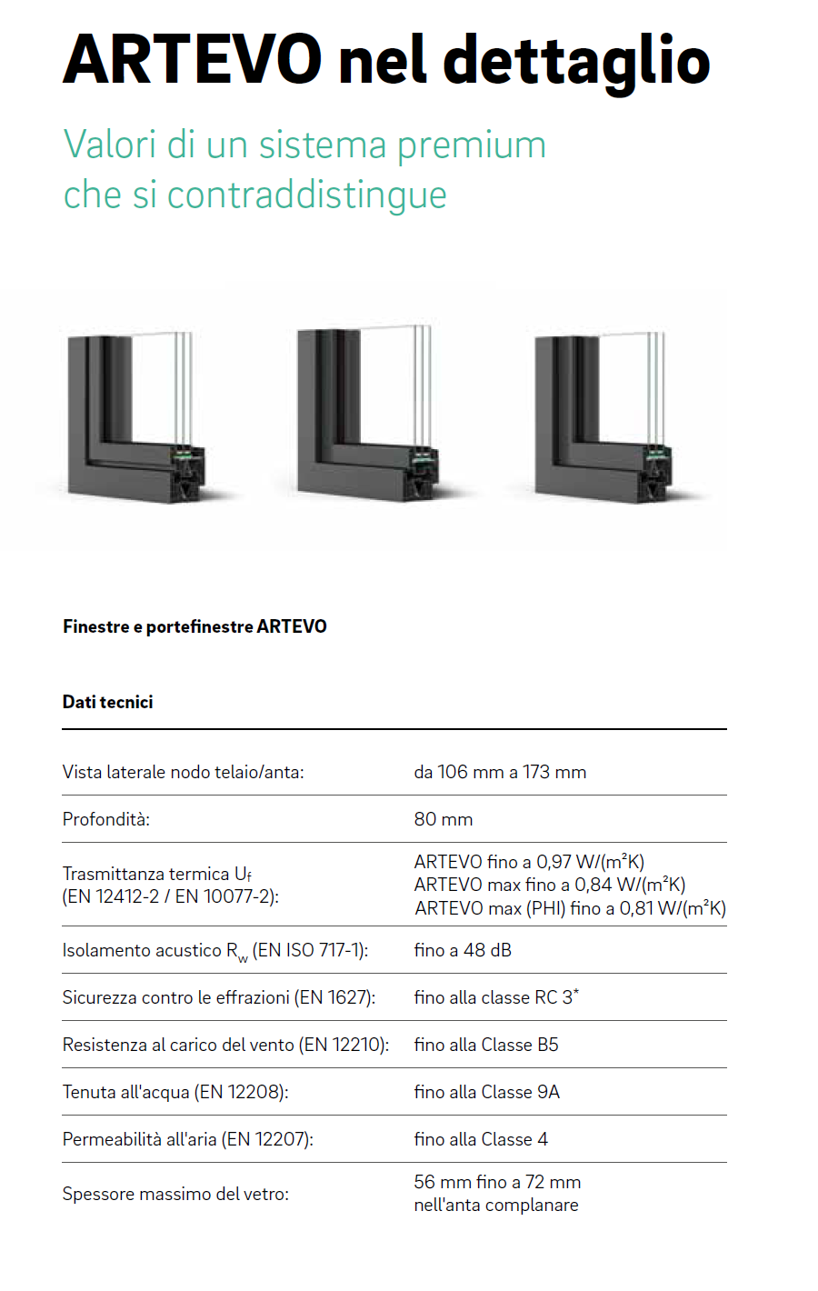 La maggior parte degli elementi ARTEVO e priva di rinforzi in acciaio, in modo da evitare la formazione di ponti termic che potrebbero dissipare il calore. Grazie all'assenza di acciaio, i profili ARTEVO raggiungono valori Uf fino a 0,97 W/(m2K). Inoltre, le grandi superfici vetrate consentono di guadagnare energia solare.