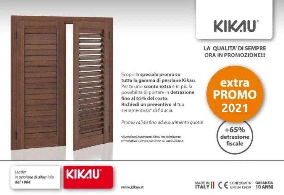 Special promotion on adjustable shutters and wood stains. For you, an extra discount on KIKAU products plus the possibility of deducting up to 50% of the cost of your external windows and doors and optional financing for the entire amount for 12 months at 0% interest with no deposit. Repayments only begin after installation of your windows and doors. Also in combination with the 2018 earthquake discounts. Promotion valid from 1/1/22 to 30/12/22 (for possible extensions, contact our offices)